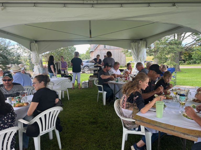 Nous étions plus d’une trentaine de personnes (membres et amies charolais) à participer à cette très belle journée. Nous avons dîné avec une très bonne lasagne fait avec la viande de Valley Charolais suivi de notre réunion. Par la suite a eu lieu notre bel encan au profit de nos jeunes éleveurs. Donna et Andrew nous ont fait visiter la ferme et ça s’est terminer avec un 5 à 7 gracieusetés de nos hôtes ou nous avons pu échanger pour terminer la magnifique journée.